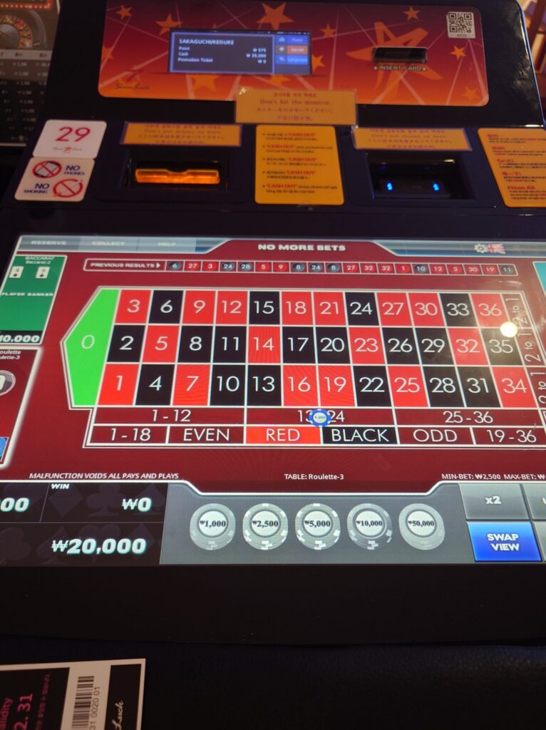 釜山の繁華街・西面(ソミョン)のロッテホテル2階にあるカジノ。スタッフはほぼ全員日本語と英語が話せる。テーブルは全て稼働してるわけではないので、ほぼ満席。日本人90%くらいと思いきや中華系、インド系もチラホラ60%くらいが日本人という印象。インド、バングラデシュ系のお客さんが多いことに驚く。時間帯にもよるが、日本人はセカンドバックやブランドもののショルダーバッグを持ったおじ様や若い女性が多め。最高でも1Gに100万ウォン(10万)賭ける人が数人いただけで、ハイローラーは見なかった。大半が1G平均10万ウォン(1万)以下程度のプレイヤー。