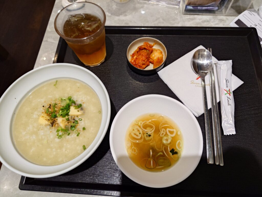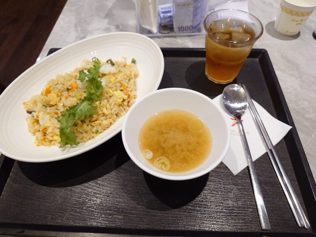海鮮チャーハンや焼肉丼、冷麺など様々なメニューがある。最初に水をくれるが、ドリンクも無料なので飲み物を頼んだ方が良い。海鮮チャーハンは日本人向けの味付けで味噌汁付き。