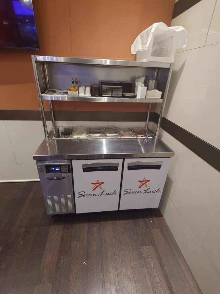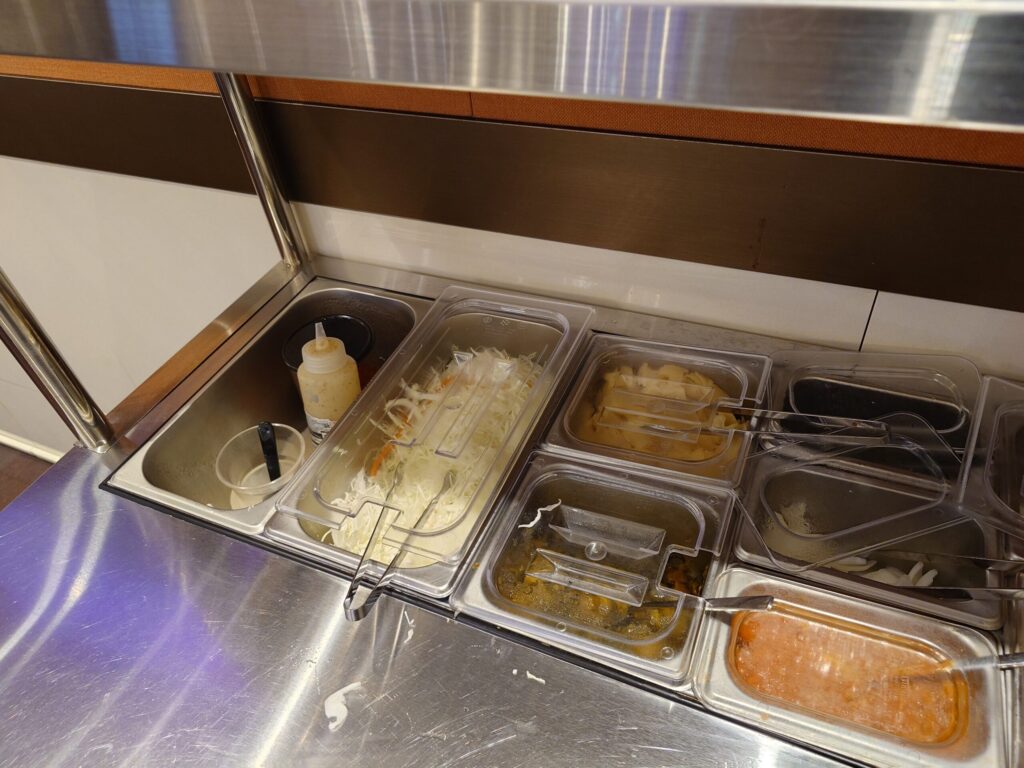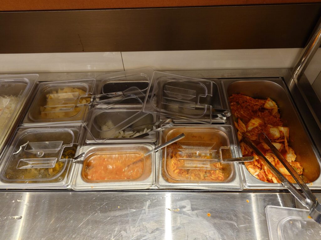 気持ち程度のラインナップだが、キムチやサラダはセルフで食べ放題。
