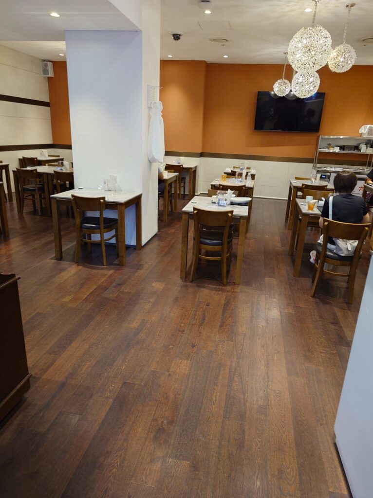 メンバーである程度ゲームすれば無料。レストラン内は完全日本語なので日本のレストランっぽい。